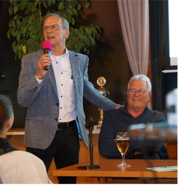 Ehrenvorsitzender Reimer Ohlendorf hielt eine Laudatio auf Ulrike und Hartwig Puhlmann für vier Jahrzehnte Übungsleiter*in in den Bereichen Fitness und Turnen. Hartwig Puhlmann gratulierte Reimer Ohlendorf seinerseits zu seiner 70-jährigen Vereinsmitgliedschaft und würdigte seine über 50-jährige Vorstandsarbeit. Insbesondere in den fast 40 Jahren als Vorsitzender prägte er den Verein auf eine ganz besonders positive Art und Weise. Einmalig!
